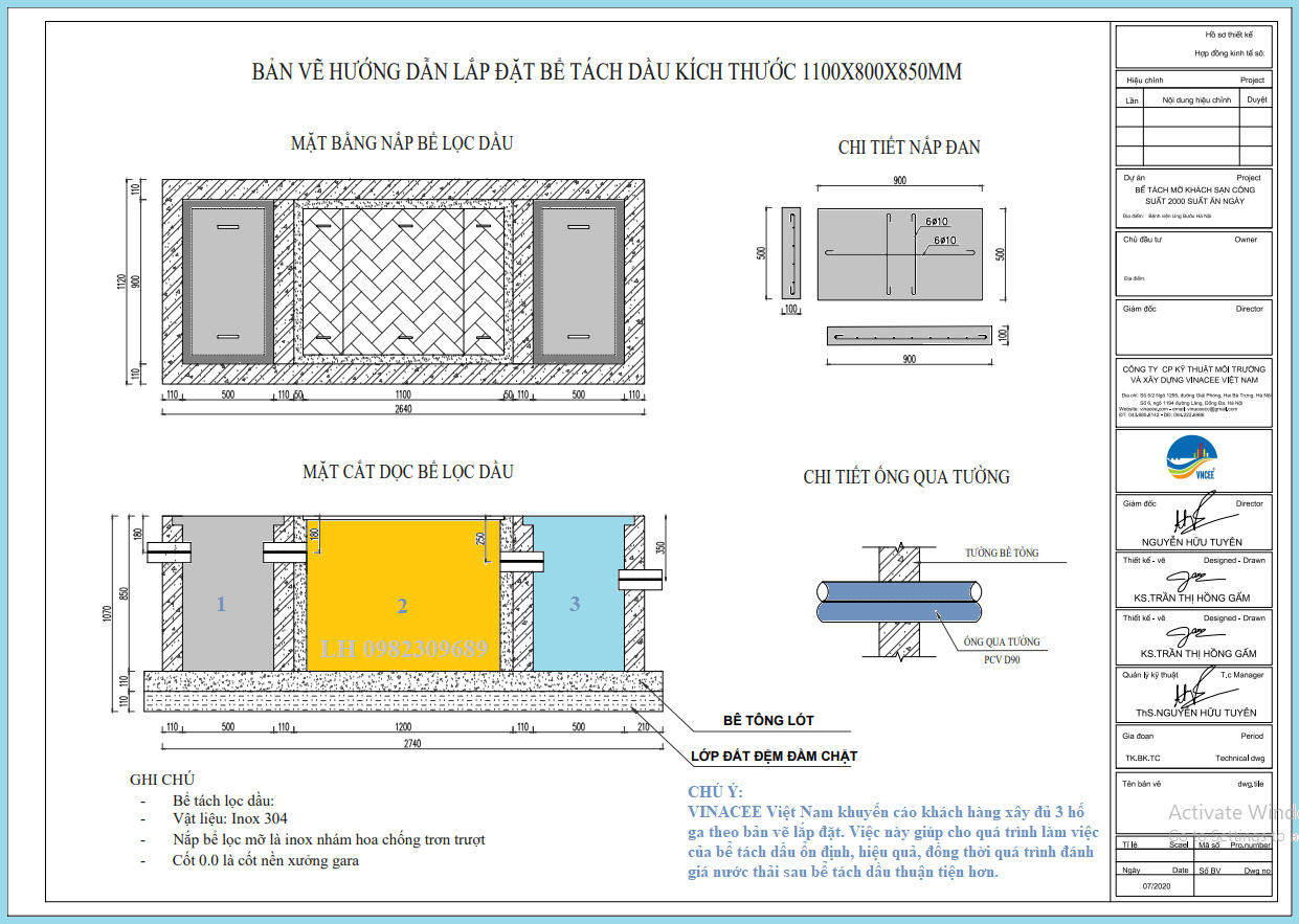 THÔNG SỐ BỂ TÁCH DẦU 2 BẬC DO 700 (DUNG TÍCH BỂ 700 LÍT) SỬ DỤNG PHÙ HỢP CHO CÁC GARA Ô TÔ QUY MÔ NHỎ.