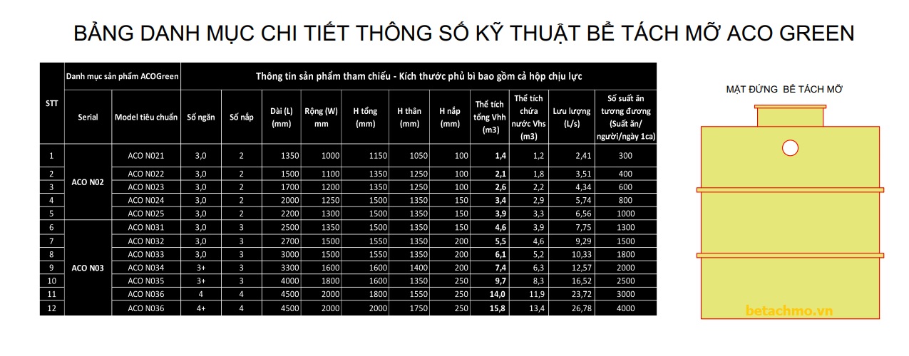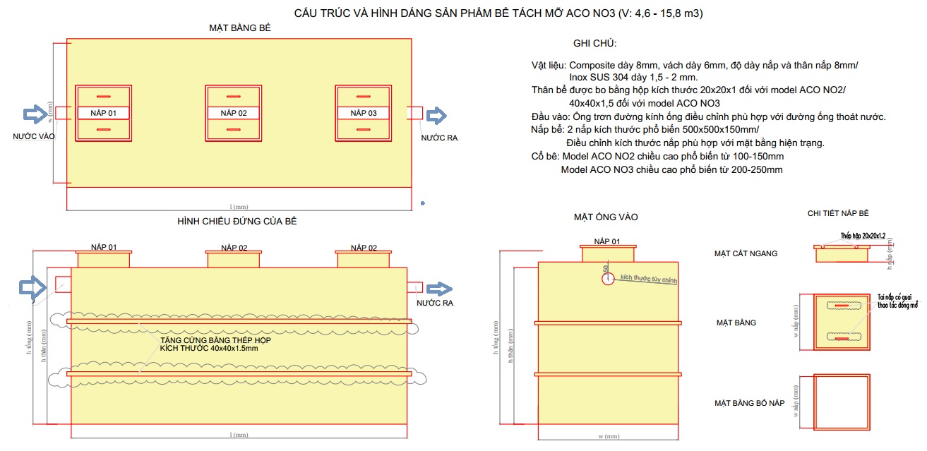 Cấu tạo và nguyên lý hoạt động bể tách mỡ thu mỡ định kỳ ACO Green (Việt Nam)