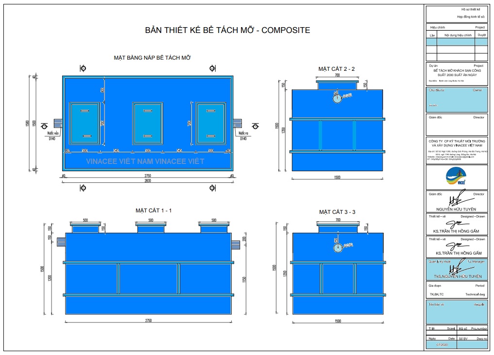 Tại Việt Nam, VINACEE luôn tự hào là đơn vị số một về thiết kế, chế tạo, sản xuất cung cấp các thiết bị tách dầu mỡ bao gồm cả bể tách mỡ cho các căn hộ chung cư. Sản phẩm của VINACEE là kết quả của nghiên cứu và cải tiến sản phẩm của đội ngũ Tiến sỹ, kỹ sư nhiều năm kinh nghiệm trong lĩnh vực Công nghệ môi trường, kỹ thuật môi trường và thoát nước.