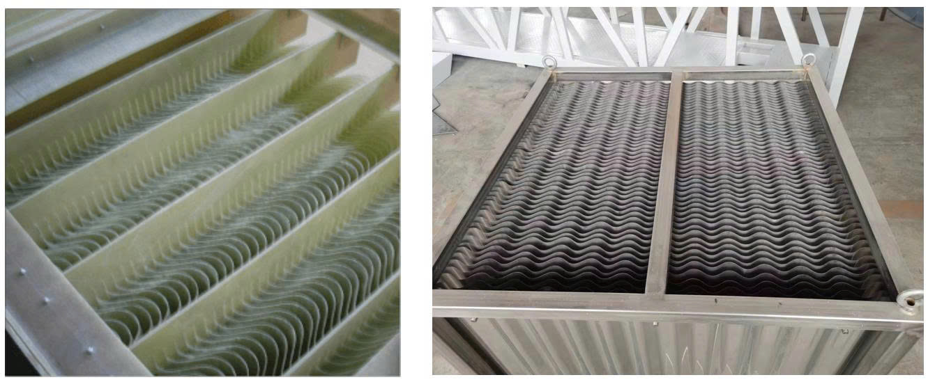 + Vật liệu bền: Tấm tách thường làm từ Polypropylene (PP), chống ăn mòn hóa chất tốt, bền bỉ và hiệu quả nhờ cấu trúc lượn sóng.