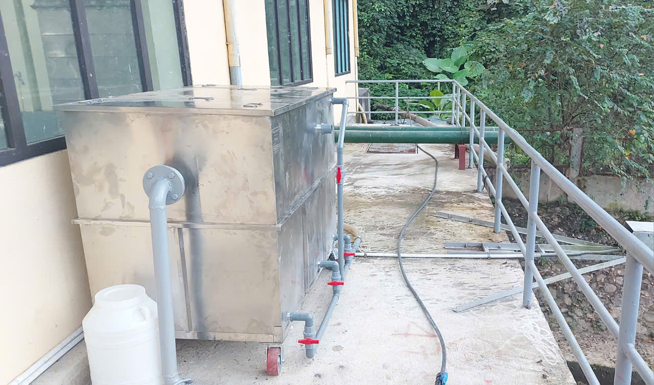 Hiện nay giải pháp thu gom ô nhiễm dầu tại nguồn bằng thiết bị phù hợp như thiết bị tách dầu FATBUT (VINACEE Việt Nam) đang được đánh giá hiệu quả và sử dụng rộng rãi. Thiết bị này có thể thiết kế phù hợp với công suất: bao gồm 5 ngăn chức năng, năng tách dầu, ngăn lọc tinh, ngăn chứa dầu, ngăn điều thiết lưu lượng, ngăn nước sach (kiểm chứng) là một trong những thiết bị tách dầu hiệu quả ra khỏi hệ thống thoát nước.