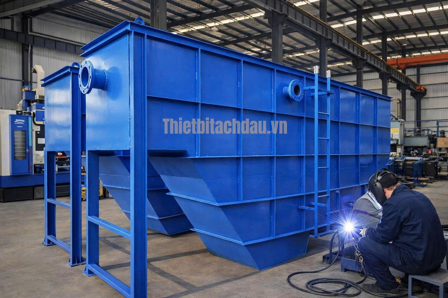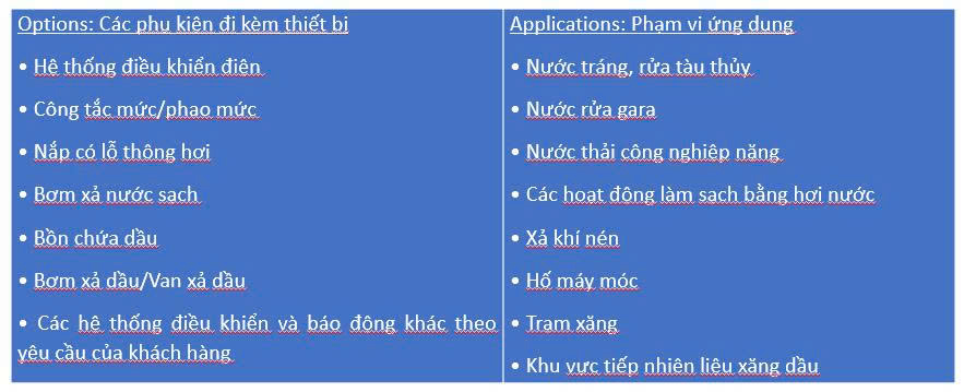 Thiết bị tách, sử dụng nguyên lý trọng lực theo thiết kế độc đáo và thông minh của VINACEE, qua đó loại bỏ dầu tự do và dầu phân tán cơ học khỏi dòng chảy đầu vào. Dầu đã tách sau đó được tự động xả bằng trọng lực vào thùng chứa chất thải. Nước sạch được xả bằng trọng lực hoặc thông qua máy bơm xả tùy chọn vào hệ thống thoát nước, hoặc quay trở lại quy trình.
