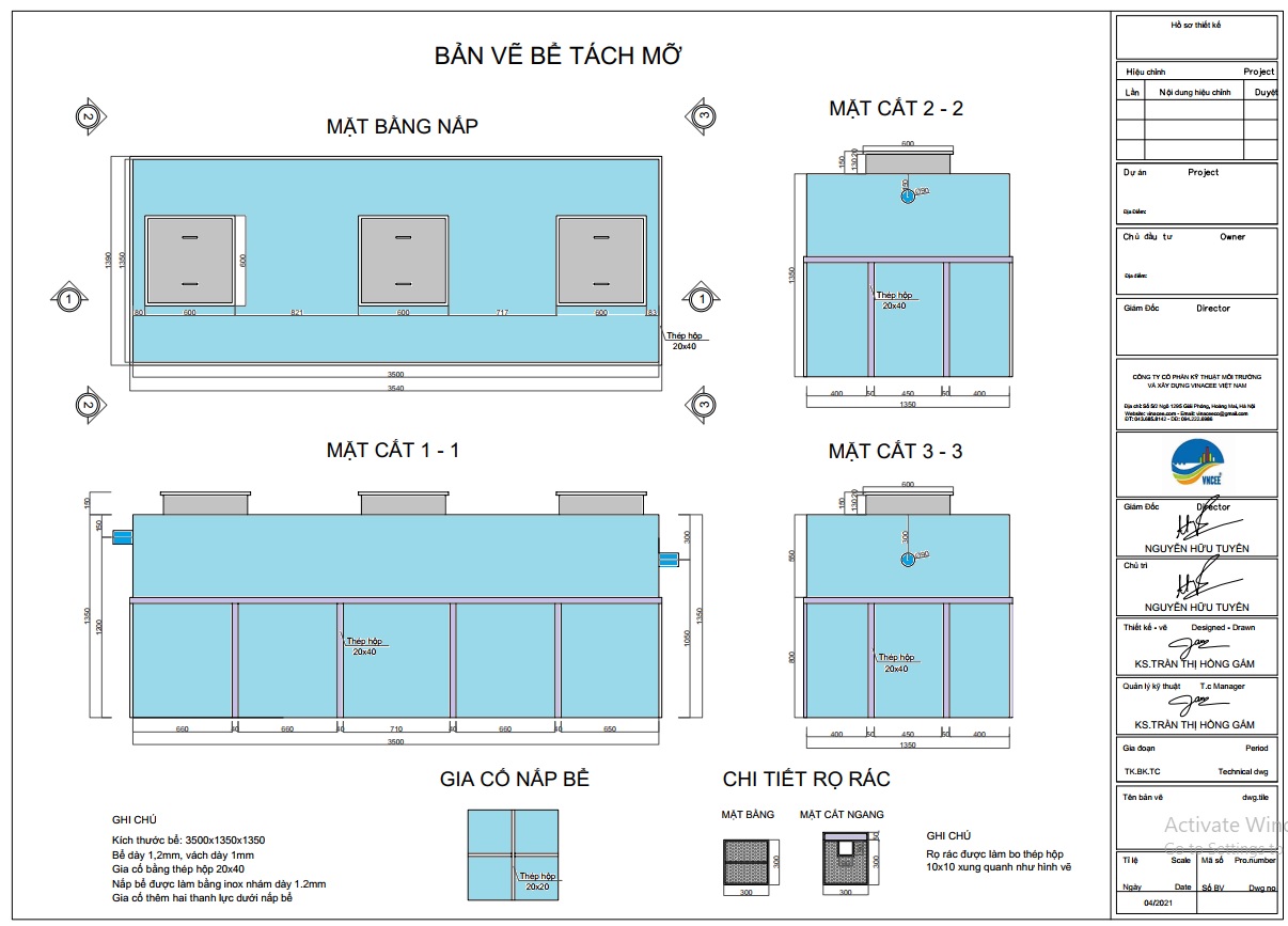 Minh họa tính toán và thiết kế bể tách mỡ mẫu của VINACEE Việt Nam