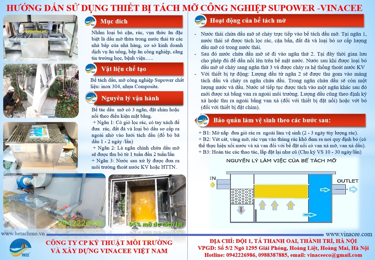 Tổ đội Hướng dẫn thi công bảo dưỡng, bảo trì vệ sinh bể tách mỡ, thiết bị tách mỡ tự động