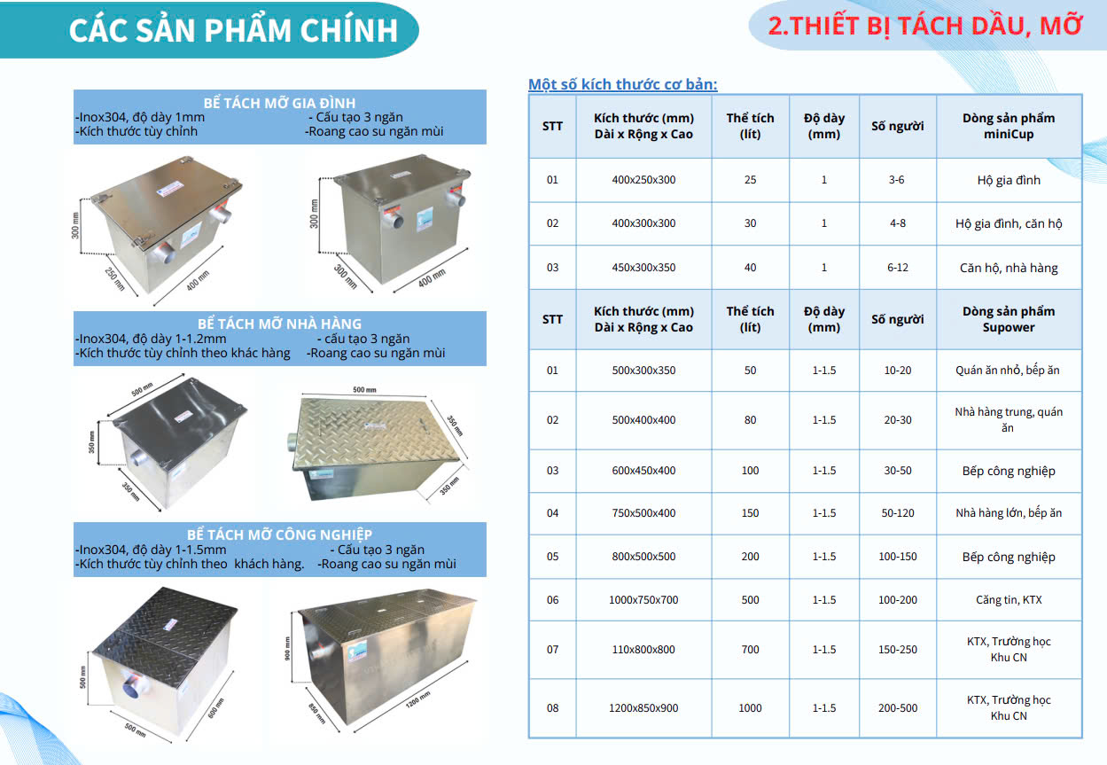 Một số mẫu bể tách mỡ Công nghiệp đang được sử dụng phổ biến. xem thêm sản phẩm cho gia đình