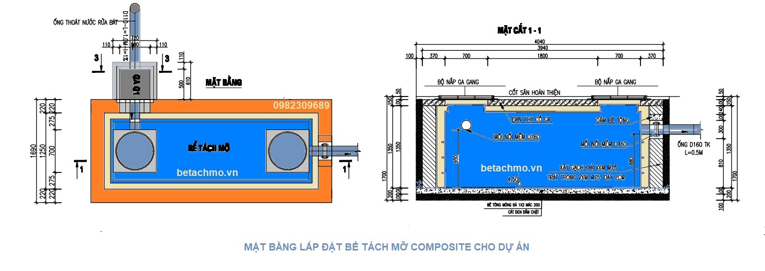 Bể tách mỡ SH - TN (sử dụng phổ biến cho căng tin trường học, bệnh viện, cơ sở y tế, đơn vị công lập)